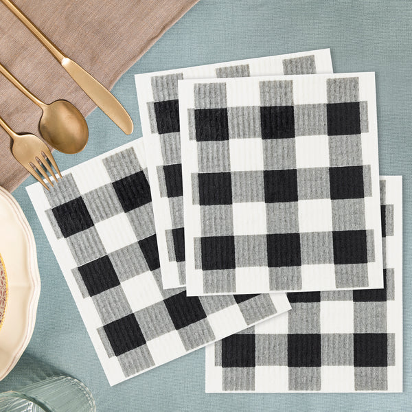 You will Get: Package contains 4pcs Swedish dishcloths in white and black checkered design. Each of the dishcloths size is about 6.7inch x 7.9inch, which is suitable for most human palm size. They are perfect for wiping surfaces of the counter, washing dishes, mopping up spills and so on.