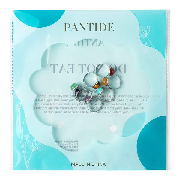 PANTIDE 7 Pcs Natural Chakra Stone Rings Healing Aura Gemstone Rings Adjustable Cabochon Titanium Steel Rings Ethnic Boho Style Jewelry Accessories for Women Girls Wedding Anniversary Birthday Gifts