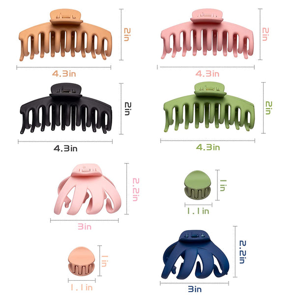 - SUPER VALUE PACKAGE: You will receive 4pcs large banana matte clips in different colors (Pink/Green/Black/Khaki), 2pcs medium octopus matte clips (Pink & Navy Blue), 2pcs small round matte clips (Pink & Green), 1pc drawstring storage bag with daisy patterns.